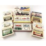 A box of diecast models of interest to include CORGI Trams, EFE Buses, CORGI CLASSICS 160001 whisky lorry and others. All pieces boxed.