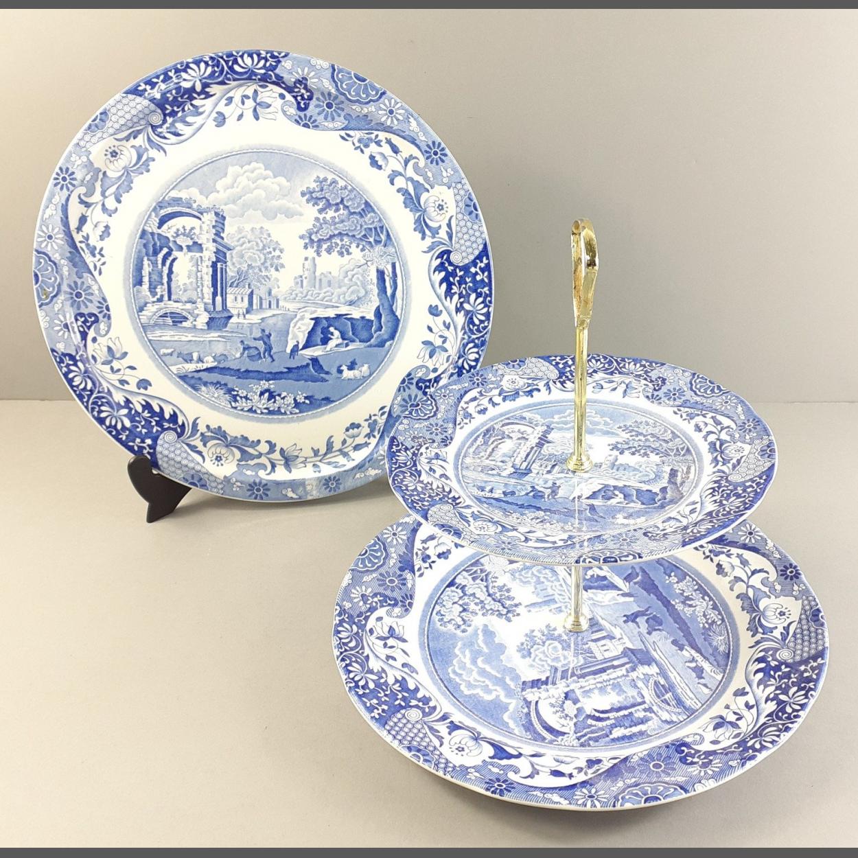 A SPODE ITALIAN 2 tier cake stand and a 29cm cake plate