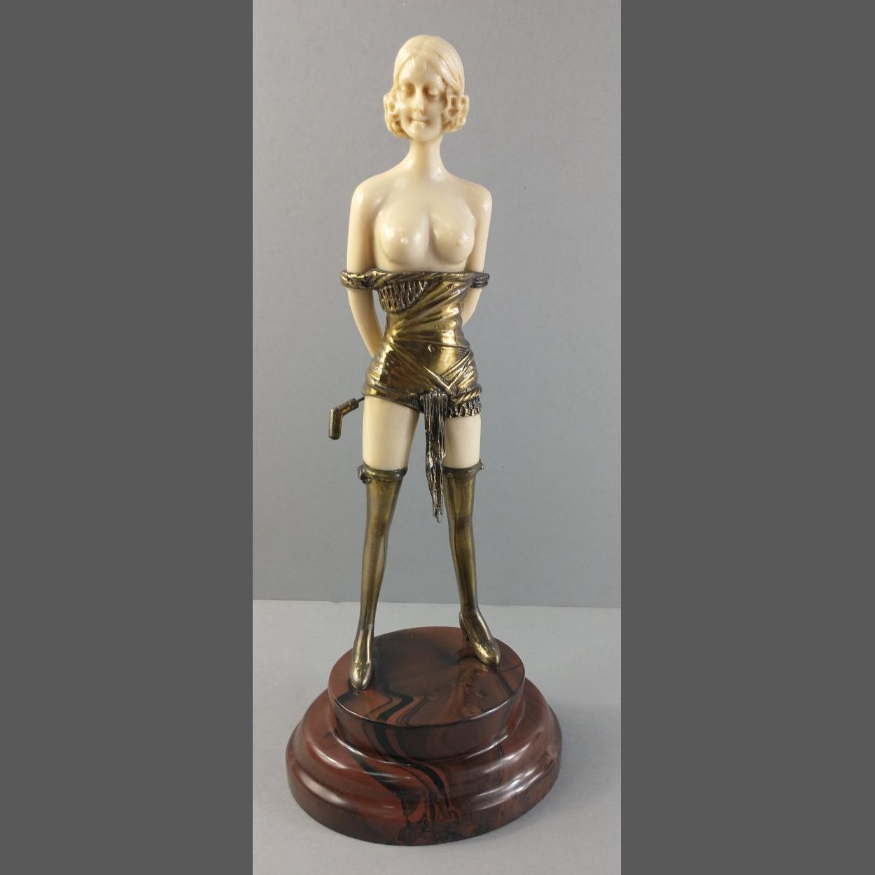After Chiparus. An Art Deco style quality cheeky resin figure of 'The Whip Girl'. 32cm approx.