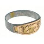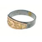 A metal ring stamped 950 and 18k with applied Egyptian scene, size P, weight 2.3g approx