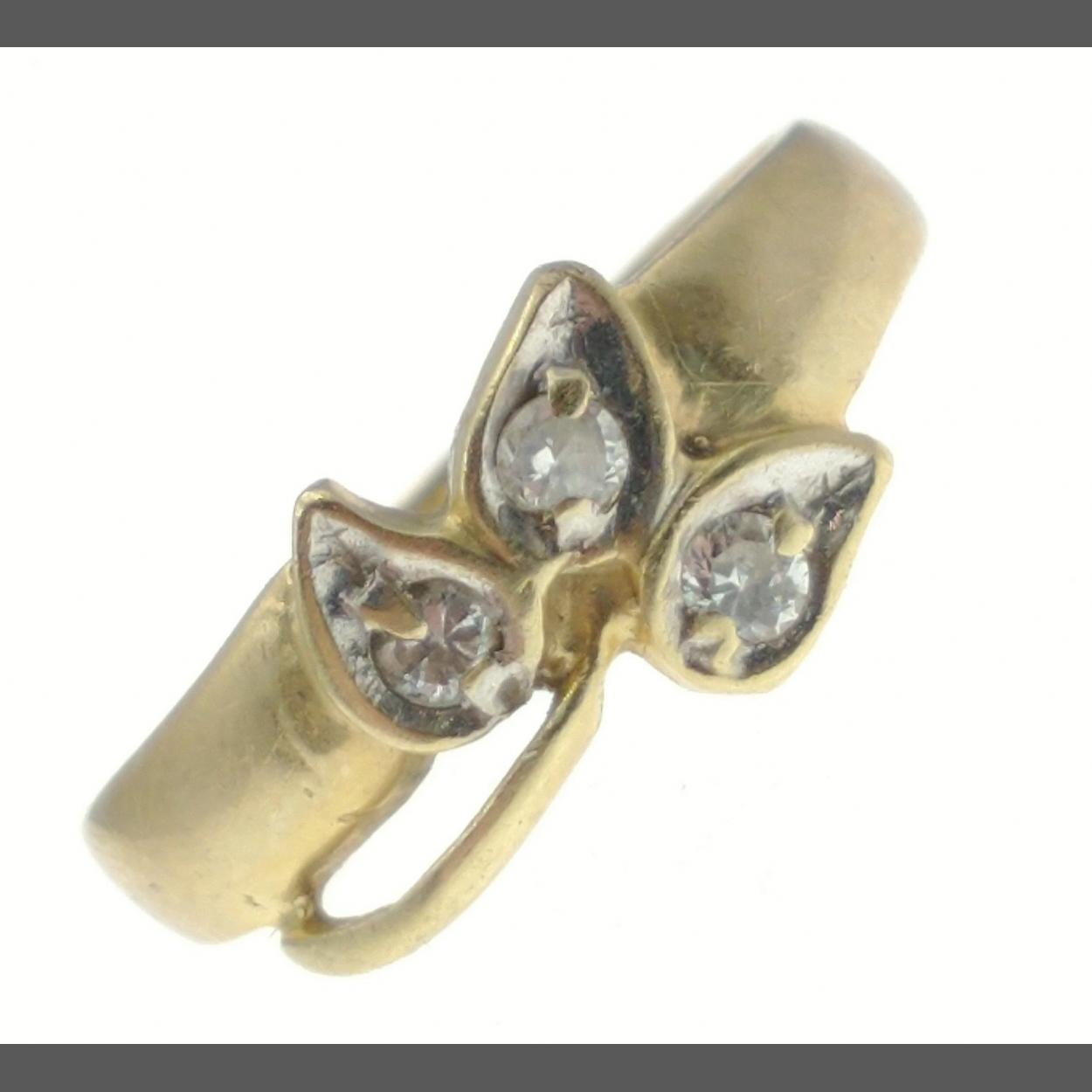 A 585 stamped gold ring with 3 clear stones, size J, gross weight 1.85g approx