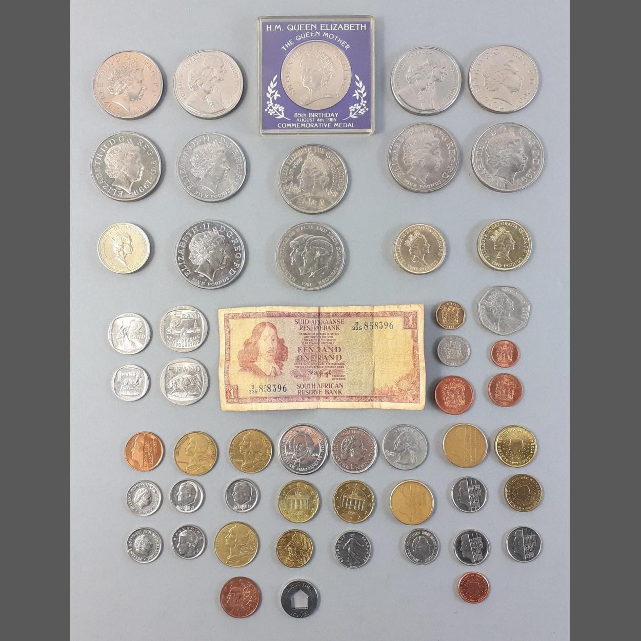 A small collection of coinage of interest to include 10 commemorative £5 pieces, 3 commemorative £2 and others