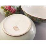 A large JOHN EDWARDS 1880-1881 with hand painted roses and transfer three piece jug, ewer and chamber pot - dimensions of bowl 38cm diameter, 13cm height, jug height 27cm and the chamber pot 20cm diameter x 14cm height approx