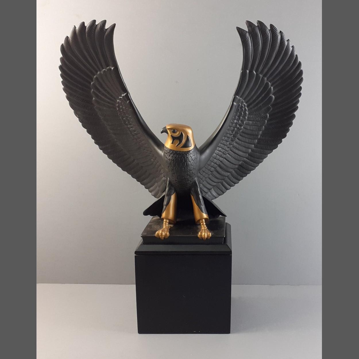 A cast metal FALCON OF THE NILE on a plinth height 49cm approx. In overall good condition