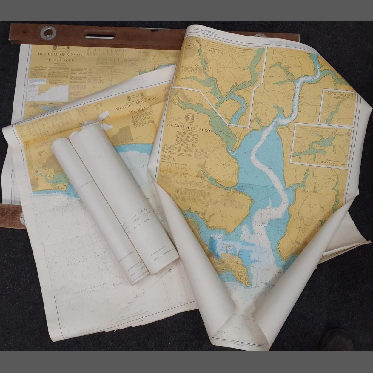 A collection of nautical charts to include Approaches to the Wash, Great Yarmouth and Approaches, River Tees to Scarborough, Land's End to Falmouth, Falmouth to Truro and others