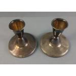 A pair of silver hallmarked, Birmingham 1960, candle sticks with weighted bases. Gross weight 160g approx, each 7cm approx