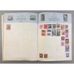 Small stamp album with content and loose cut stamps. Includes a small amount of tea, wizard etc. collectors cards.