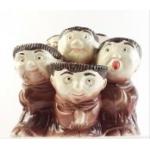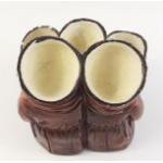 Cheeky (German?) FRIARS / MONKS CHOIR pottery egg holder unmarked but likely to be WEISS. Lovely humorous little group 12cm high. A few minor chips to paint but displays really well.