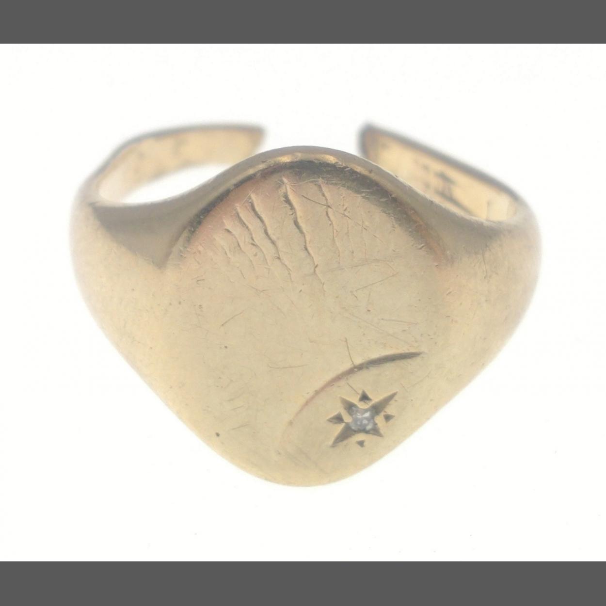 Gents broken signet ring. indistinct mark but tests as 9ct gold. 6.5g approx.
