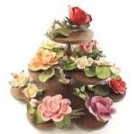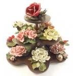 FRANKLIN MINT PORCELAIN bisque sculpture of 12 months of roses with display stand. One certificate missing. Five roses with very minor nibbles