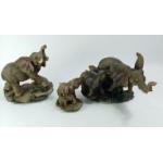 Three realistic looking elephant figurines, largest group H18 x L30cm approx. No damage.