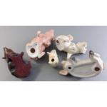 CAPODIMONTE porcelain pink sitting pig (no damage) 18cm length x height 10cm approx, with also a set of three pigs, one by Highbank of Lochgilphead Scotland, the rest by JHK etc