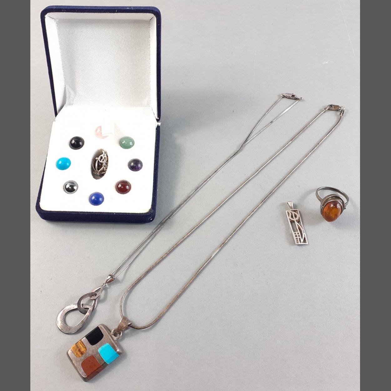 A small collection of costume jewellery to include a ring and a small selection of pendants.