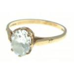A 9ct gold ring with large white clear centre stone. Size O. Gross weight 2.3g approx
