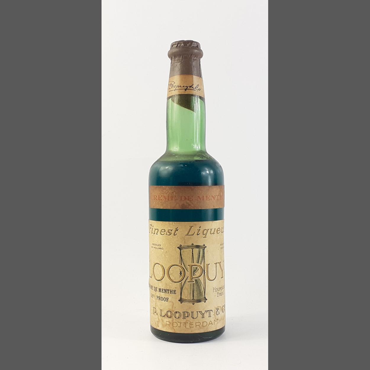 A vintage find - a half bottle of LOOPUYT 56 proof Creme de Menthe Hourglass brand from P Loopuyt & Co of Rotterdam
