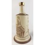A pair of very unusual and appealing R. Carmichael pottery decanters in excellent condition with stoppers. Both 70cl bottles. Lovely items with Eagle and Stag raised motifs.