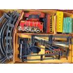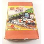 BRIMTOY Train Set in original box with several Locos and rolling stock pieces. All with play wear but some lovely graphics. Includes rail.