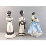 Two ladies from the WEDGWOOD Hyde Park Collection - Caroline and Lavinia each approx 20cm high plus a ROYAL DOULTON figure of Adrienne 21cm approx. No damage
