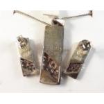 A silver pendant (2cm long approx), stamped 925, set with a pink stone on a 44cm chain with a matching pair of earrings. Gross weight 8.45g approx