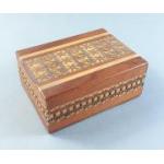 A very pretty small Gaudi Hydraulic Mosaic box with a nice selection of pretty small brooches. Includes one sterling silver engine turned blue enamel, a Scottish style twist with stone, an Edward VII silver coin bar brooch and others.