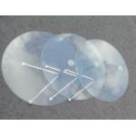 Nest of three tables. Glass topped with chrome legs. Unusual modernists design in good condition. Tallest 55cm high, diameter 50cm approx.