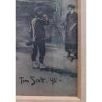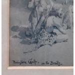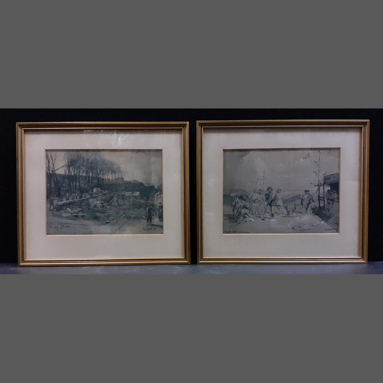 An interesting pair of golfing prints. THE GOLF STREAM by Tom Scott and PREHISTORIC GOLF ON THE BRAIDS. Each 34cm x 29cm approx.