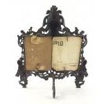 A Victorian bronze double photo frame. Surmounted with a female mask within pierced frame, and sides cast with cherubs, the reverse stamped Rd No. 444517