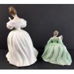 Two attractive figurines being ROYAL DOULTON Summer Rose (HN3309) 21cm tall and COALPORT Justine 14cm tall. No damage to either piece