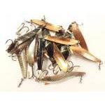 An old box with a selection of fishing lures, 15 in total mainly by TOBY.