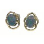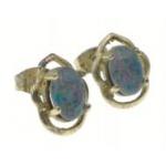 A pair of Australian OPAL stud earrings on unmarked yellow metal - nice quality opals!