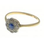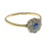 An 18ct stamped ring with blue stone and white stones surrounding - size Q/R gross weight 1.90g approx