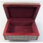 A heavily decorated wooden jewellery box set with mother of pearl, 16x11x6cm approx.