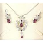 An elegant selection of four boxed necklaces and suites to include lovely Hollywood Greats necklace and earrings, similar with purple stones and a Cristalina box set.