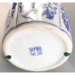 A very nice large Oriental pattern blue and white lidded jar. 39cm tall approx. and in lovely condition. Unusual style and shape.