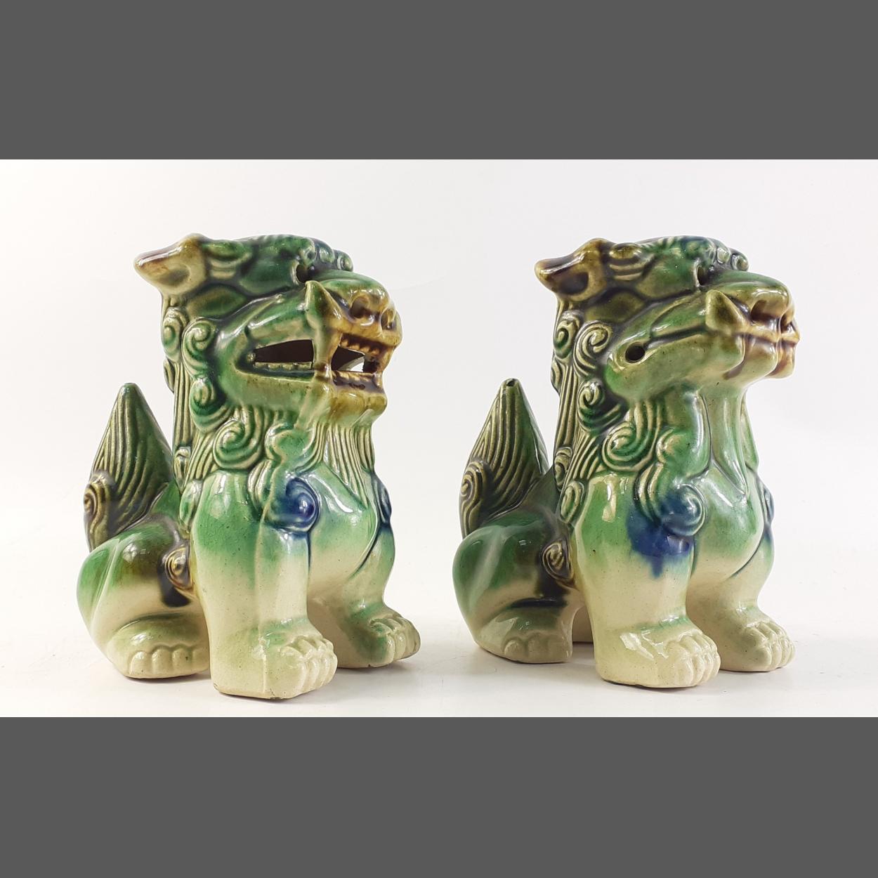 A pair of ceramic Foo Dogs each standing 13cm tall approx. No damage.