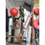 A mixed lot of tools to include allen keys, grease gun, hand held hammers, hand saws, silicone gun and lots more!