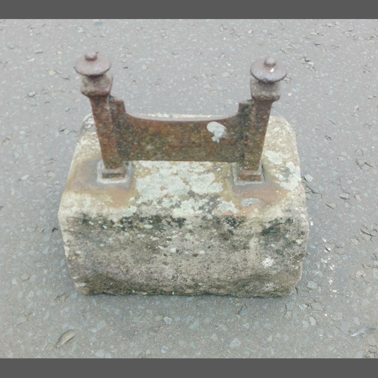 An antique boot scraper set into a stone base. Measures W30 x D19 x H35cm approx