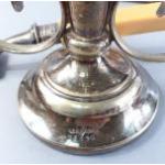A silver plate lot to include a vase 27cm tall, 3 branch candelabra, a 29cm pierced plate and others
