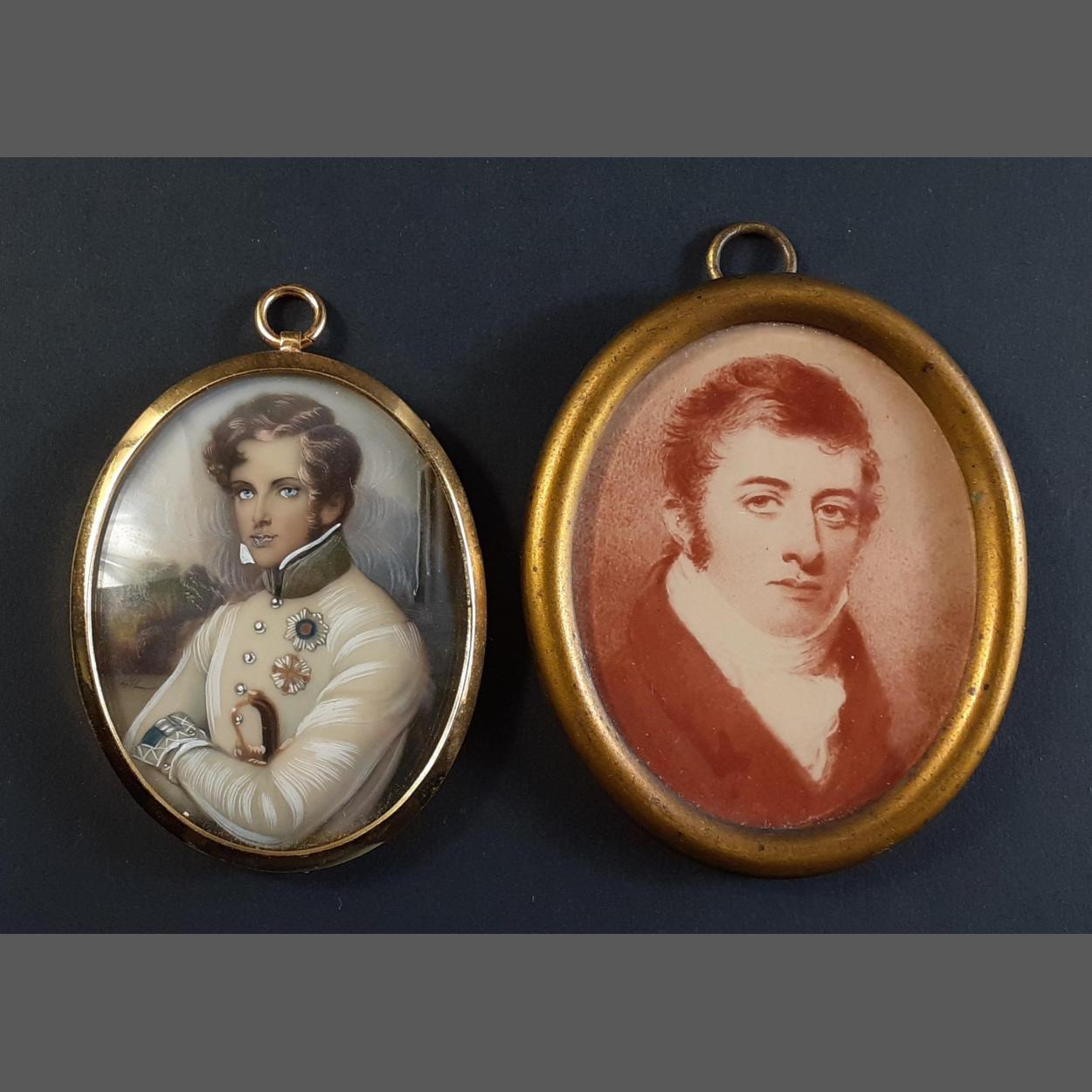 Two small miniatures of gentlemen one in modern oval frame. 7cm approx.