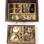 Two jewellery boxes, one with contents of cufflinks, the other leather crocodile style covered with a lift-out shelf and contents of quality jewellery. Box measures 23x15x18cm approx. Comes complete with key