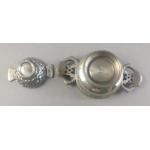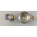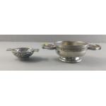 Two quaiches to include a beautiful small Scottish Art Pewter quaich with Cairngorm style stones to ornate handles largest 12cm across