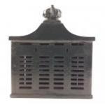 A wall-mounted cast iron letter box in British racing green depicting an early postman on horseback. Measures 36x15x42cm approx. Missing key