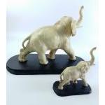 Two stunning detailed elephants which would make a very attractive addition to your display cabinet. Large elephant standing at 19cm tall approx including the plinth, smaller elephant standing at 9.5cm tall approximately including plinth.