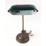 An original green shaded banker's lamp with great patina, stands 42cm approx