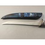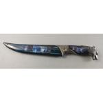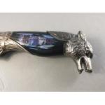 A modern decorative knife in hard sheath with Wolf Head finial. The blade is 20cm long approx.