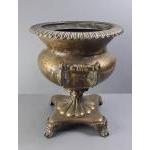 An ATTRACTIVE antique brass urn effect plant holder with twin handles on a four-legged base, stands 33cm tall approx, diameter 25cm approx