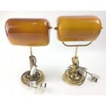 TOP QUALITY - Two reproduction banker's lamps with bronze shades, each standing approx 39cm high