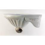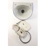 A MAURICE HERBEAU of Lille Foutmain attractive CERAMIC hand-painted blue and white bathroom set with ORNATE white metal comprising wall mirror, hand towel holder, toilet roll holder, tap mixer