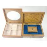 Two wooden jewellery boxes one with lift out shelf (26x18x8cm approx), the other with clear Perspex insert in lid (24x20x8cm approx)