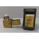 A vintage ZIPPO brass Jack Daniel's lighter in case with spare flints